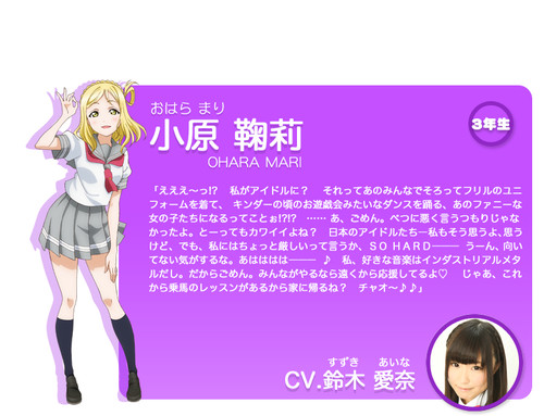 Aina Suzuki trong vai Mari Ohara: nữ sinh lớp 12, cô bé là con lai, cha của cô bé là một người Ý gốc Pháp đang điều hành một chuỗi khách sạn kiểu Ý. Cô bé có tính cách vui vẻ và tự do.