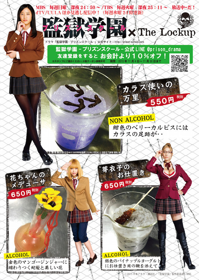 Một nhà hàng đã lấy hình ảnh 3 chị quản ngục xinh tươi làm thành 1 thực đơn đặc biệt mang tên Tide up Menu. Nhà hàng mang tên ” The Lockup” cho ra 1 thực đơn mang có tên 3 nhân vật nữ trong anime Prison school lân lượt là: