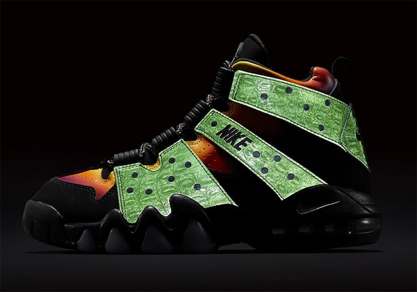 Nike Air Max CB ’94, giày có chữ ký của NBA huyền thoại Charles BarkleyNhững đôi giày được trang bị tấm phản quang xanh mặt da thằn lằn, màu vàng / cam da gradient, mudguards nubuck màu đen, và lòng bàn mang hình ảnh của hàm răng con quái vật huyền thoại Godzilla.