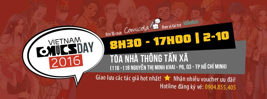 Sự kiện Vietnam Comics Day 2016 diễn ra từ 8h30 sáng đến 17h chiều ngày chủ nhật, 2/10/2016.
