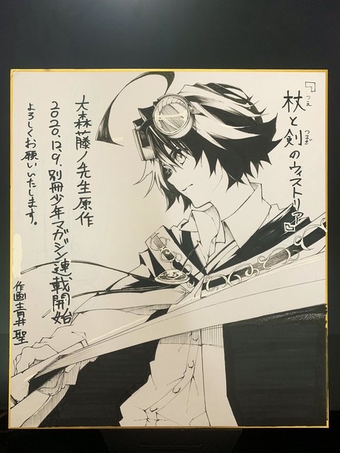 Số 46 tạp chí Weekly Shōnen Magazine thông báo rằng tác giả Fujino Ōmori (Is It Wrong to Try to Pick Up Girls in a Dungeon?/DanMachi) sẽ ra mắt manga thể loại “dungeon fantasy” mang tựa đề Tsue to Tsurugi no Wistoria (The Wistoria of Staves and Swords) trong số tháng 1/2021 của tạp chí Bessatsu Shōnen Magazine, được phát hành vào ngày 9/12. Toshi Aoi sẽ là họa sĩ của manga và hình ảnh đầu tiên của manga cũng đã được tiết lộ.