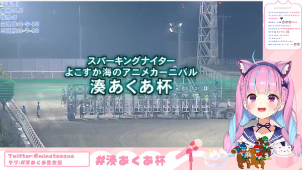 Trường đua Kawasaki đã tổ chức một giải đua ngựa được tài trợ mang tên “Minato Aqua Cup” vào ngày 5 tháng 7 để kỷ niệm sự kiện Lễ hội Anime trên Biển Yokosuka sắp tới, trong đó Youtuber ảo Minato Aqua là đại sứ.