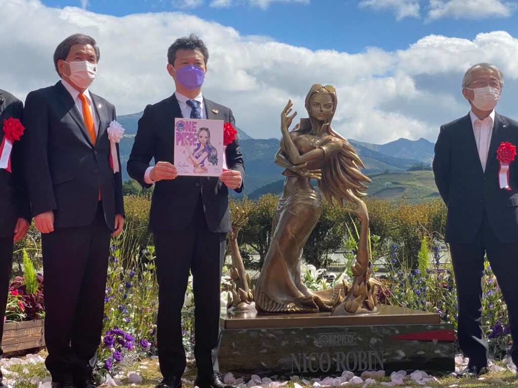 Một bức tượng Nico Robin mới vừa được dựng lên tại quên hương Kumamoto của tác giả Eiichiro Oda. Bức tượng của Robin vừa dịp để kỷ niệm rất nhiều cột mốc đáng nhớ trong năm nay của One Piece, điển hình như việc manga vượt qua 1000 chap, anime cũng sẽ cán mốc 1000 tập trong nay năm hay One Piece vượt qua rất nhiều bộ truyện khác để trở thành một trong những thương hiệu truyện tranh bán chạy nhất trên toàn thế giới (chỉ đứng sau Super-Man). Để tưởng nhớ cũng như vinh danh những thành tựu mà tác giả Oda đã đạt được với One Piece thì hằng năm các bức tượng của những nhân vật trong nhóm Mũ Rơm sẽ được dựng lên, mới nhất chính là Nhà Khảo Cổ Học của băng Mũ Rơm – Nico Robin.