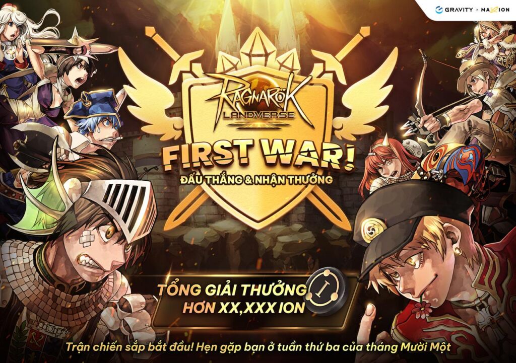 Ragnarok Landverse sẽ bật mí Bang Hội Chiến đầu tiên (Guild War), có tên gọi “First War”, trong tuần thứ ba của tháng 11, với giải thưởng hấp dẫn hơn 10,000 ION.