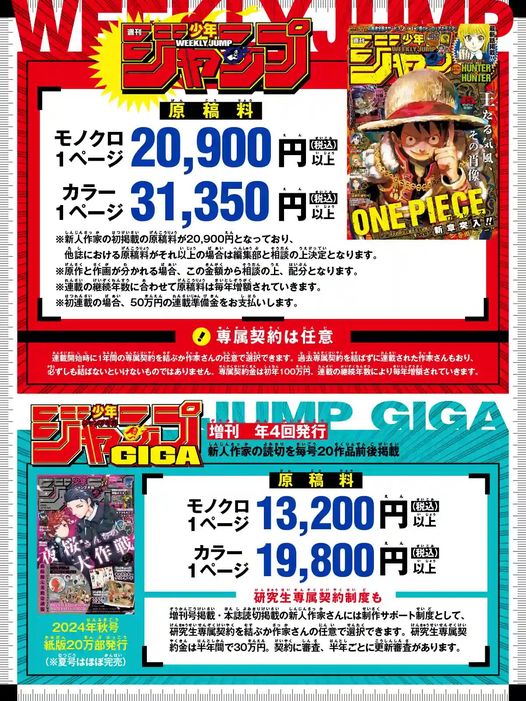 Mức lương thấp trong ngành công nghiệp anime và manga của Nhật Bản được biết đến rộng rãi, nhưng Shueisha, thông qua tạp chí Weekly Shonen Jump mang tính biểu tượng của họ, đang thực hiện một bước tiến đáng kể để giải quyết vấn đề này. Vào cuối tháng 11, nhà xuất bản đã công bố mức tăng đáng kể trong phí bản thảo trả cho các họa sĩ.