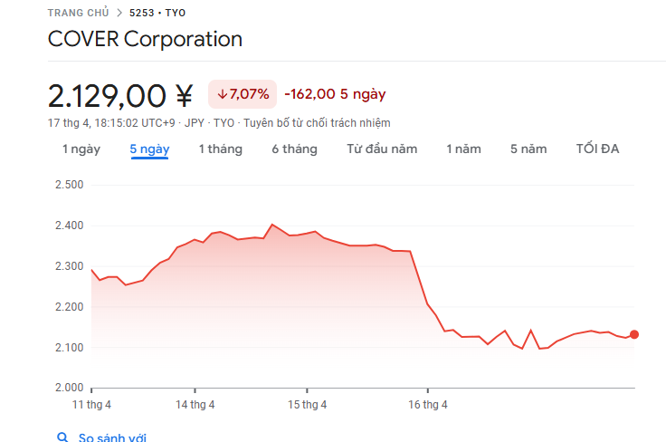 Sau khi Vtuber Gawr Gura tuyên bố giải nghệ, Cổ phiếu Cover Corp nhánh chóng chạm đáy.