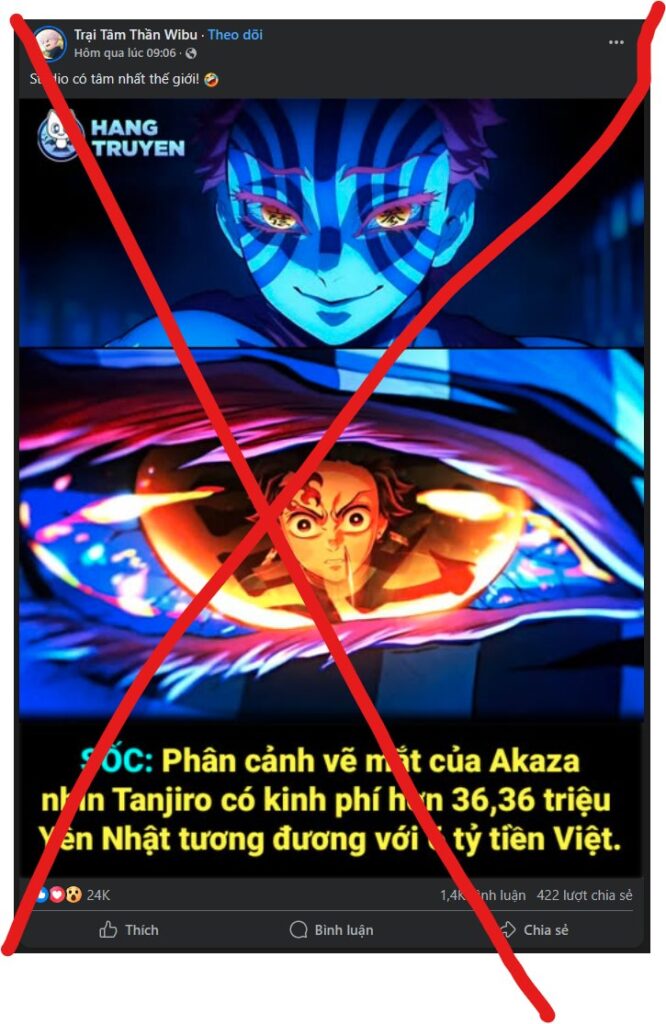 Sau khi trailer đầu tiên cho anime điện ảnh “Kimetsu no Yaiba: Vô Hạn Thành” chính thức được lên sóng thì một số Fanpage ở Việt Nam đã bắt đầu xuất hiện những thông tin về kinh phí sản xuất.