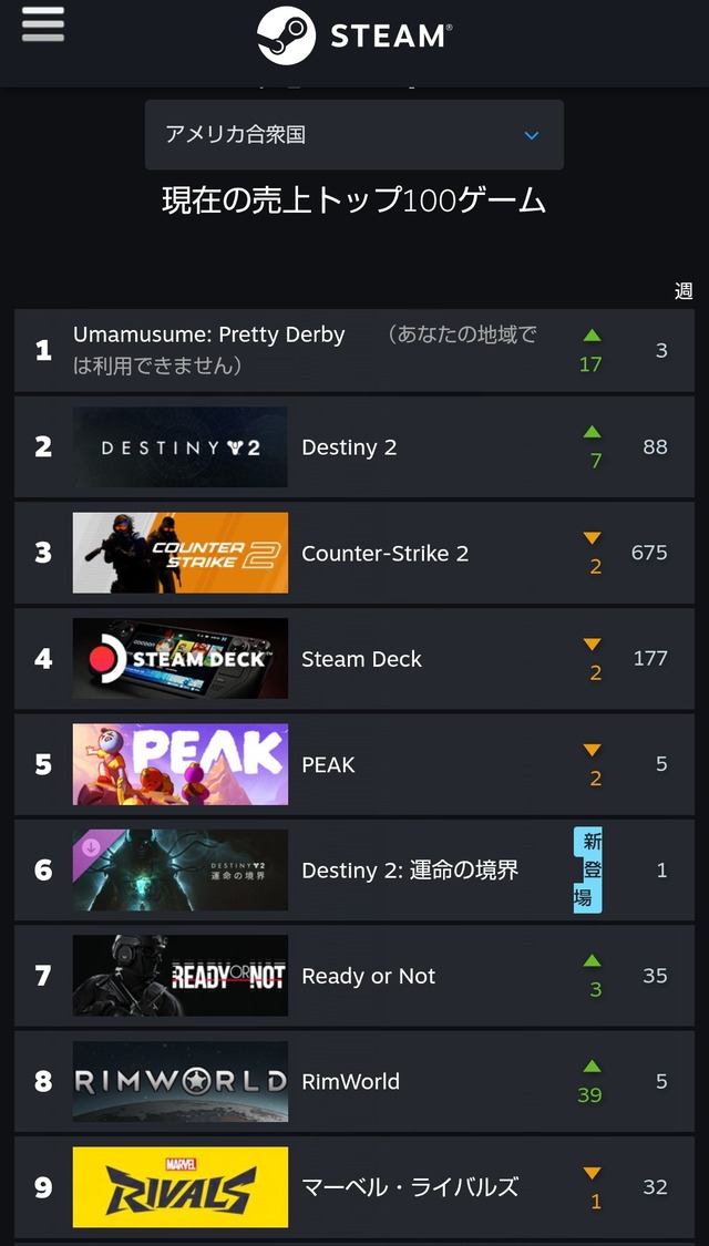 Diễn đàn Nhật Bản Otakomu ghi nhận tựa game đã vươn lên vị trí số 1 trong bảng xếp hạng doanh số của Steam. Họ cũng tiết lộ các thống kê về số lượng người đang chơi hiện tại, mức đỉnh 24 giờ qua trên Steam: