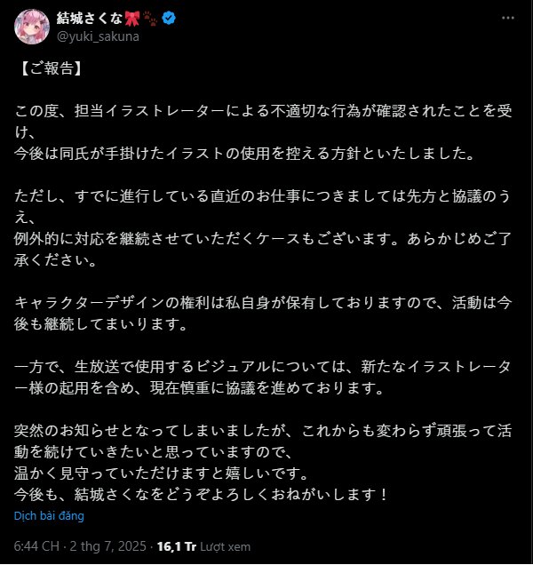 VTuber Sakuna Yuki chia sẽ những thông tin xoay quanh Scandal của họa sĩ GAOU