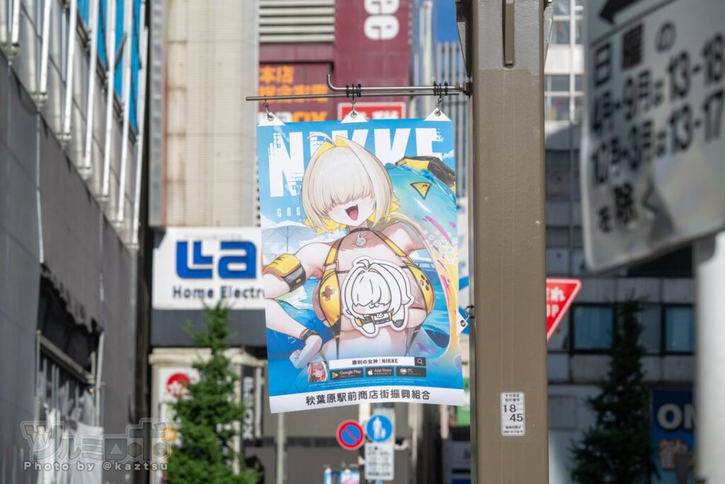 Khu Akihabara nổi tiếng dành cho các otaku đã chào đón mùa hè nóng bỏng với những bộ đồ bơi quyến rũ mới từ các cô gái xinh đẹp đến từ game Goddess of Victory: NIKKE, bằng các tấm panel quảng cáo cỡ lớn khắp khu vực. Tuy nhiên, đáng tiếc là tất cả hình ảnh đều đã bị kiểm duyệt — phần vòng 1 của các nhân vật nữ gợi cảm đều bị che lại.