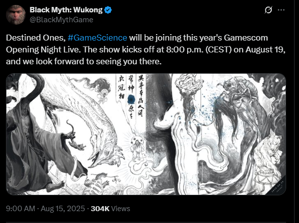 Trong bài viết được đăng trên trang Twitter chính thức của mình, Game Science đã bật mí là hãng sẽ có mặt tại Gamescom 2025.
