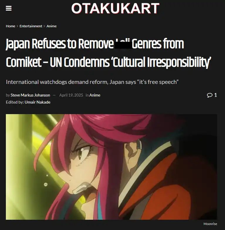 Một bài viết gần đây đã lan truyền trên mạng xã hội với tiêu đề: “Nhật Bản từ chối loại bỏ Loli khỏi Comiket — Liên Hiệp Quốc lên án là ‘Hành động phi văn hóa’.” Và tất nhiên, tin này lan nhanh trên Internet còn nhanh hơn cả spoiler manga trước ngày phát hành.