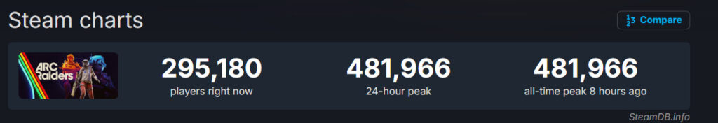 Dựa theo thông số đến từ SteamDB, tựa game “extraction shooter” của Embark Studios vừa qua đã đạt được kỷ lục người chơi cùng lúc mới ở mức 481.966 người chơi. Đặc biệt, đây cũng chính là lần thứ 2 tựa game đạt kỷ lục người chơi mới chỉ trong vòng 1 tuần.