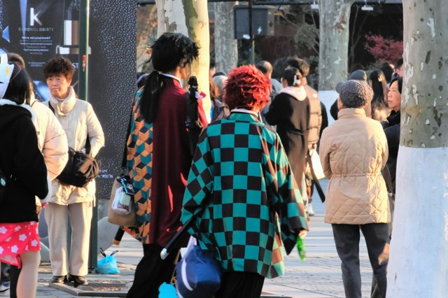 Xa khỏi địa điểm tổ chức sự kiện, tại khu trung tâm thành phố Hàng Châu, ba cosplayer khoảng 20 tuổi trong trang phục các nhân vật của “Demon Slayer: Kimetsu no Yaiba” đang chụp ảnh cho nhau. Họ đã đặt vé tàu và khách sạn, vì vậy họ quyết định đến Hàng Châu. Tuy nhiên, họ tiếc nuối, “Tôi đã từ bỏ ý định đến địa điểm tổ chức sự kiện vì chỉ cần nhìn thoáng qua là rõ ràng anime Nhật Bản bị cấm. Thật khó khăn nhưng chúng tôi vẫn có một buổi offline vui vẻ với mọi người ở bên ngoài.”