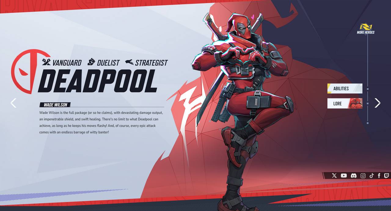Trong mùa này, Deadpool chính thức gia nhập đội hình các siêu anh hùng và phản diện Marvel với vai trò “triple-role hero” – có thể đảm nhận ba phong cách chiến đấu khác nhau. Tuy nhiên, ở chế độ Quick và Competitive, mỗi đội chỉ được phép có một Deadpool duy nhất.
