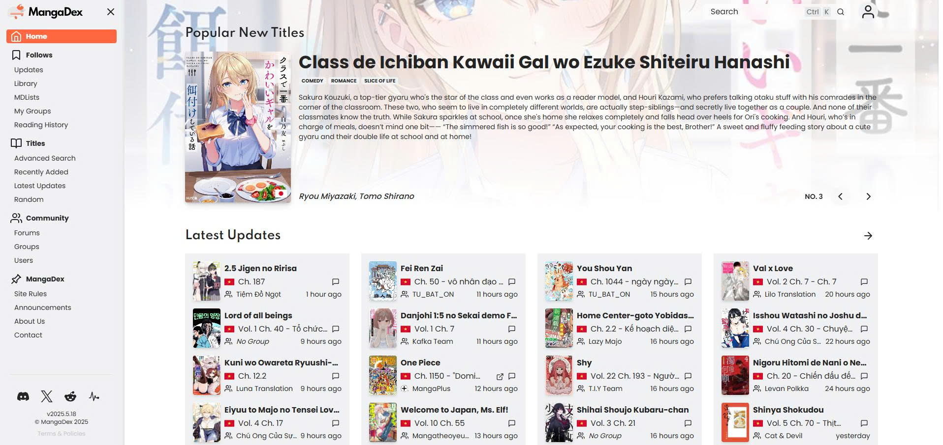 Trang web đăng tải manga không bản quyền MangaDex sẽ bắt đầu “tuân thủ pháp luật”, dù vốn nổi tiếng là nơi cung cấp nhiều bộ manga mà không có giấy phép chính thức. Sự thay đổi này được chú ý sau khi một số tựa truyện bắt đầu bị gỡ khỏi nền tảng, đặc biệt là các tác phẩm có chứa cảnh nhạy cảm liên quan đến nhân vật dưới tuổi vị thành niên.