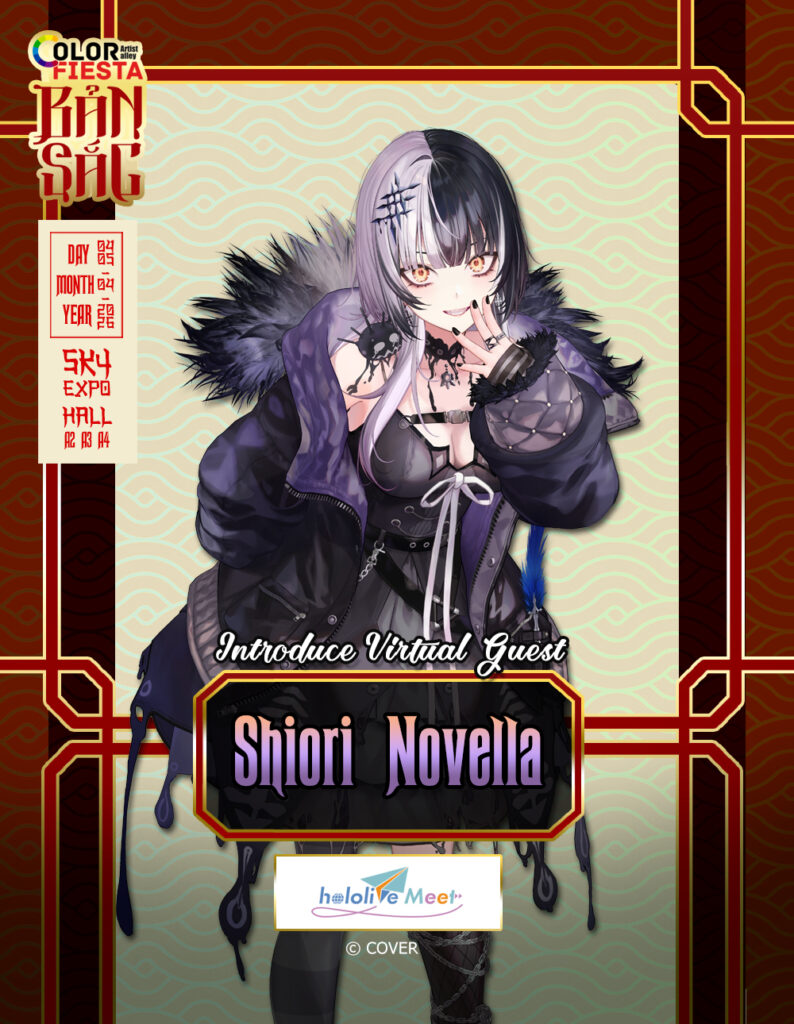 Mở màn cho danh sách khách mời quốc tế là Shiori Novella – “The Archiver” đầy bí ẩn đến từ nhánh hololive English -Advent- với màn debut cực kỳ ấn tượng vào tháng 7 năm 2023.