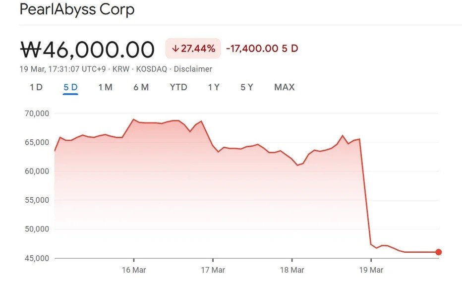 Trong báo cáo tài chính về thị trường tài chính Hàn Quốc được đăng gần đây, cổ phiếu của Pearl Abyss đang giao dịch ở mức 46.600 Won – giảm 28,9% so với phiên giao dịch trước đó (trước khi các điểm số đánh giá được công bố).