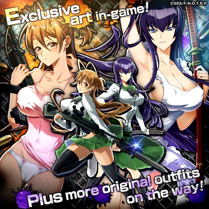 Những người còn sót lại sau đó đã tập hợp cùng các bạn học khác bao gồm Saya Takagi, Kota Hirano, đội trưởng câu lạc bộ kendo Saeko Busujima và bác sĩ trường học Shizuka Marikawa để cùng nhau tìm đường thoát thân. Lối chơi của tựa game sẽ tập trung sâu vào việc xây dựng căn cứ và phòng thủ chiến lược, đòi hỏi người chơi phải lắp ghép một đội ngũ nhân vật mạnh mẽ để chống lại từng đợt tấn công không ngừng từ kẻ thù.